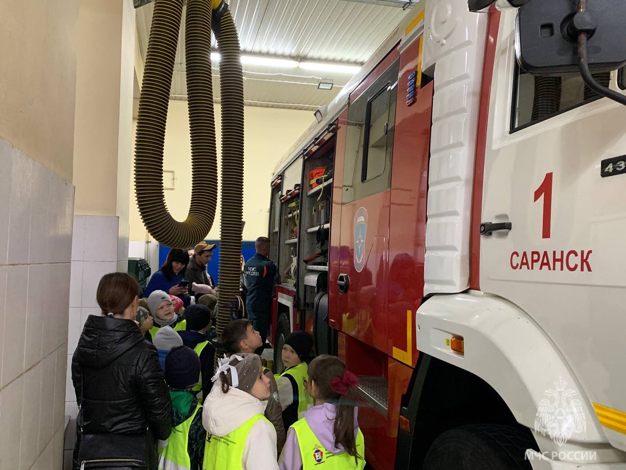В гости к огнеборцам пожарно-спасательной части №1 города Саранска пришли первоклассники лицея №7. По сложившейся доброй традиции, юных гостей провели по всем помещениям части, особое внимание уделив гаражному боксу, где стоит вся специализированная техника, находящаяся на вооружении подразделения.
