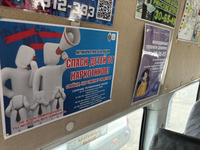 Так, сотрудники управления по контролю за оборотом наркотиков МВД по Республике Мордовия совместно с представителями ГБУ «Республиканский гражданско-патриотический центр молодежи» организовали расклеивание информационных памяток в салонах общественного транспорта.