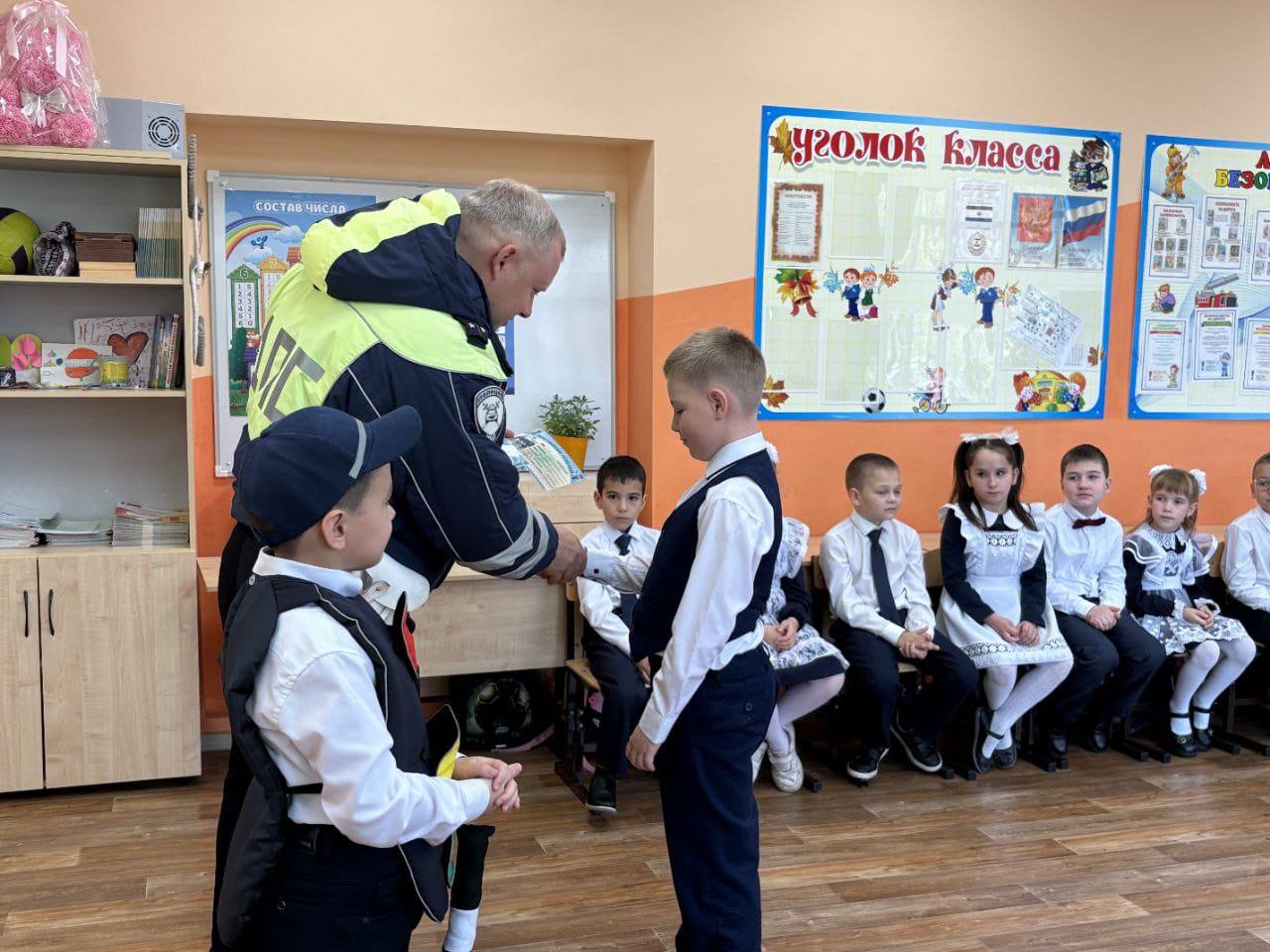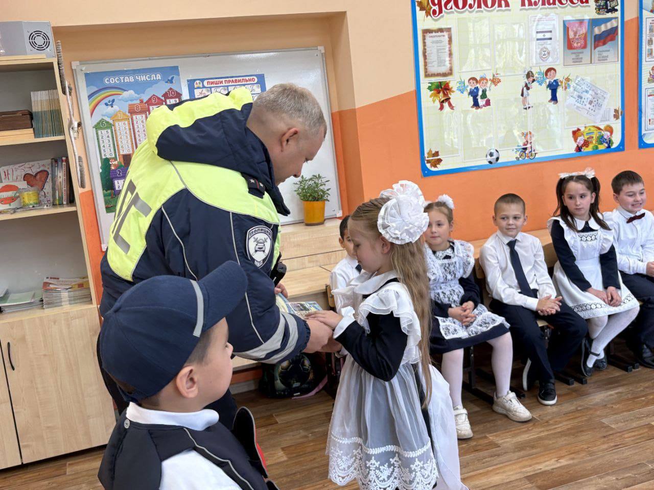 В завершении мероприятия юным пешеходам полицейский вручил «удостоверения пешеходов»призывая их помнить о дисциплине и ответственности, которые жизненно необходимы каждому пешему участнику дорожного движения.