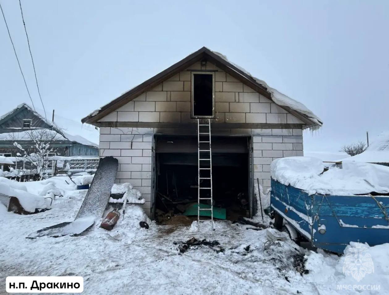 В результате пожара поврежден гараж на площади 102 квадратных метра и два транспортных средства на площади 5 квадратных метров.Сообщение о пожаре поступило 7 января в 08 часов 18 минут.
