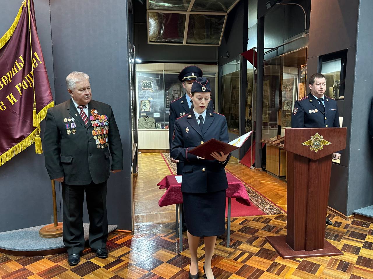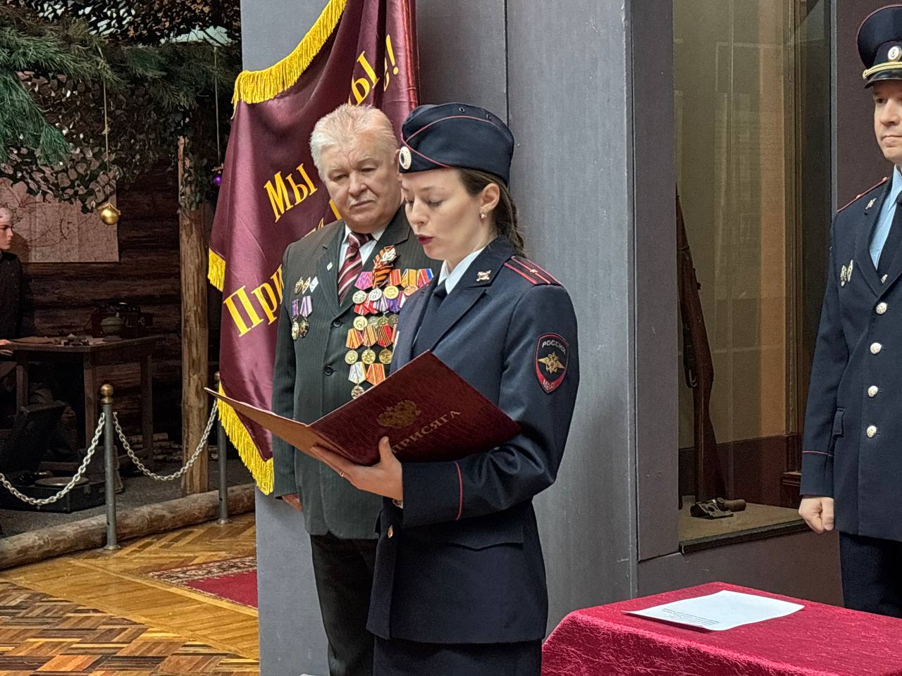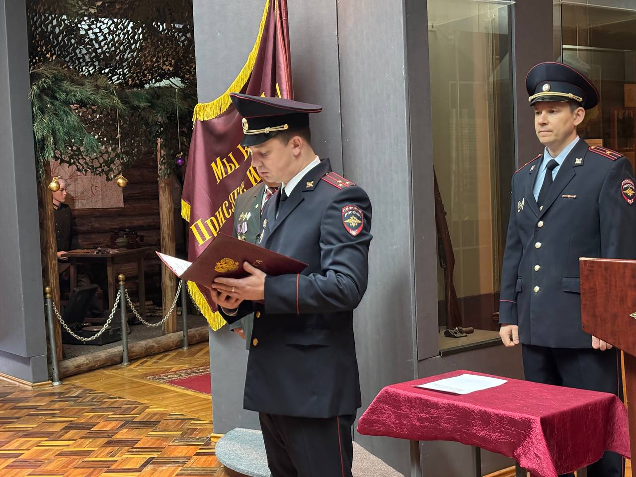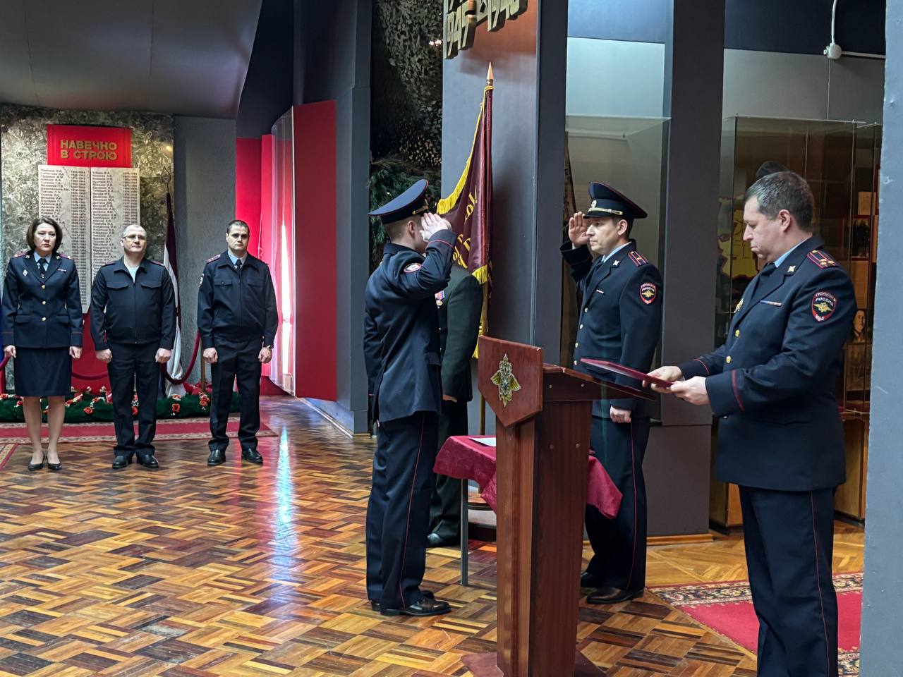 В музее МВД по Республике Мордовия состоялась торжественная церемония принятия присяги молодыми сотрудниками органов внутренних дел. В мероприятии приняли участие заместитель начальника УРЛС МВД полковник полиции Евгений Ратников, председатель правления Совета ветеранов МВД ведомства подполковник внутренней службы в отставке Виктор Ларин, руководство подразделений и личный состав.