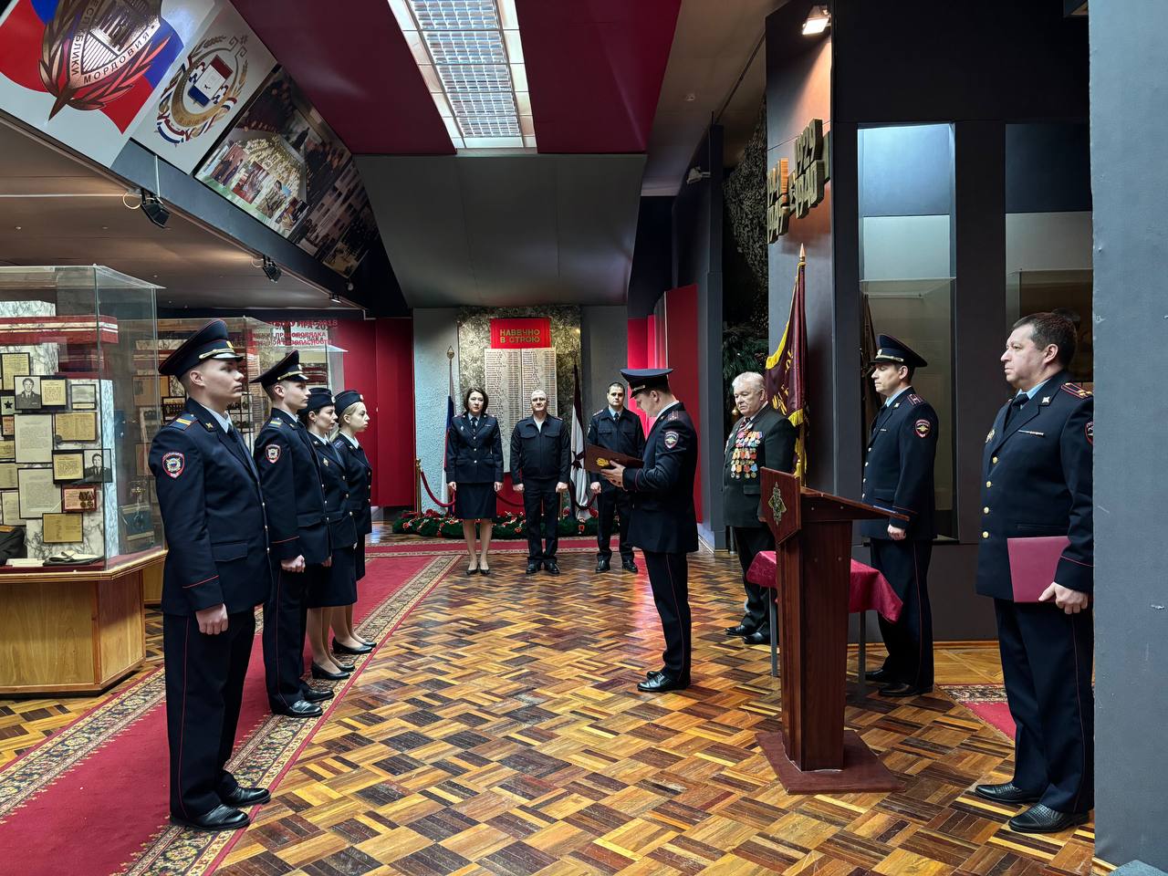 С важным событием молодых сотрудников также поздравил ветеран органов внутренних дел Виктор Ларин. Он пожелал новому поколению полицейских мужества, дисциплины и высокой личной ответственности, отметив: «Служба в органах внутренних дел — это не только знание законов и профессиональные навыки. Это умение слышать людей, сохранять выдержку в сложных ситуациях и оставаться верными долгу».Завершилось торжественное мероприятие общим фото и экскурсией в музее МВД по Республике Мордовия.
