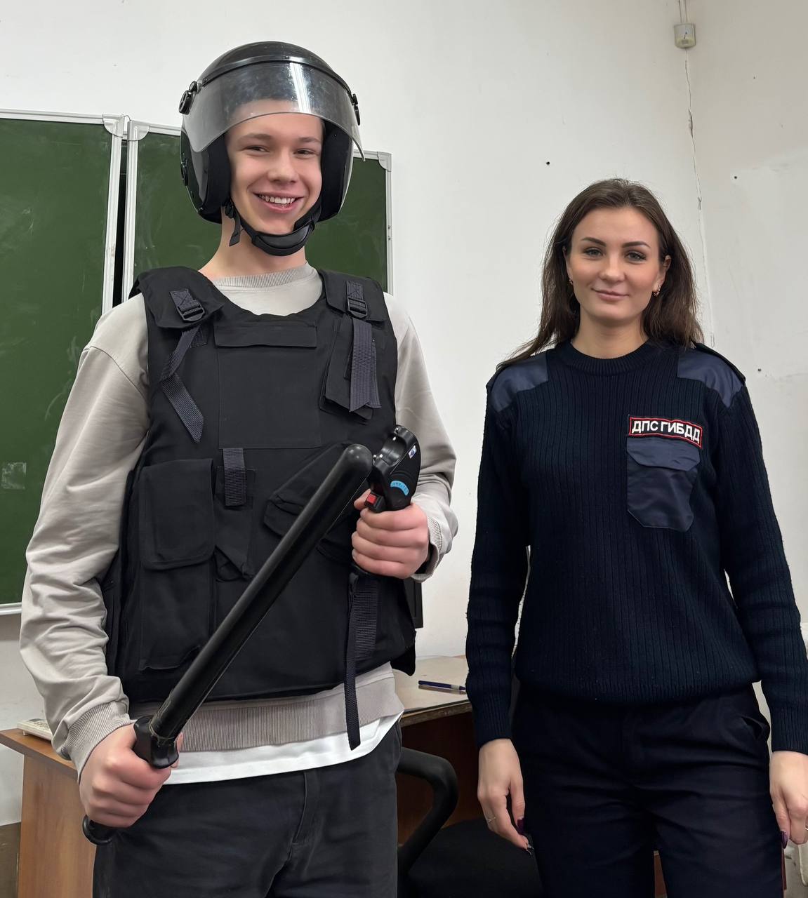 На этом мероприятие не закончилась. Вслед за спецсредствами студенты осмотрели патрульный автомобиль. А некоторые даже попробовали себя в роли автоинспектора.