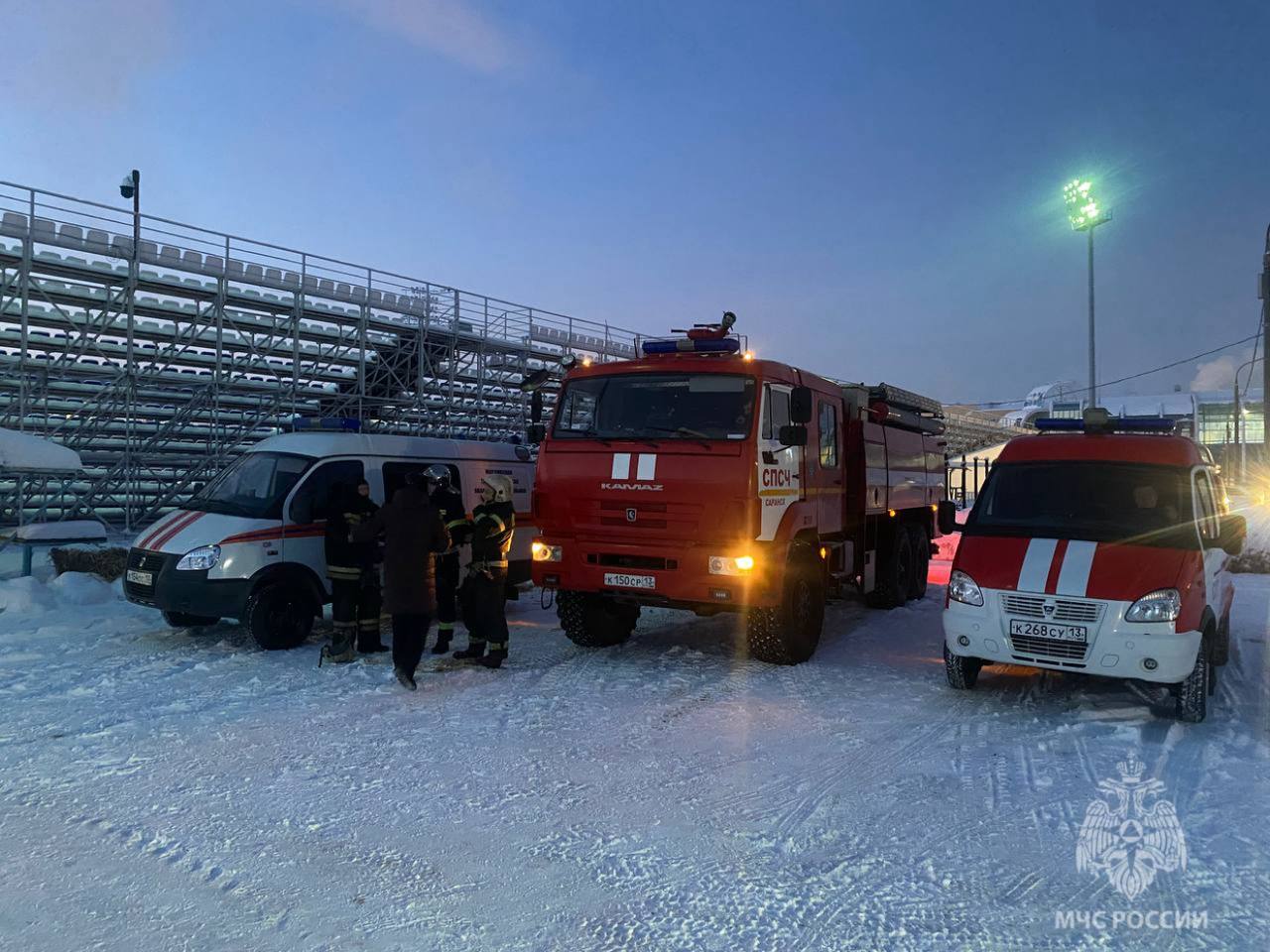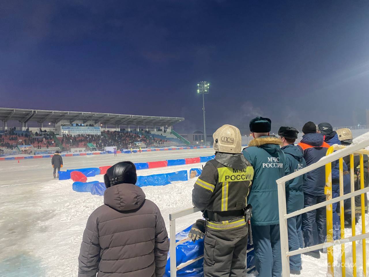 Были выставлены посты по периметру стадиона с первичными средствами пожаротушения для обеспечения безопасности спортсменов на ледовом треке.