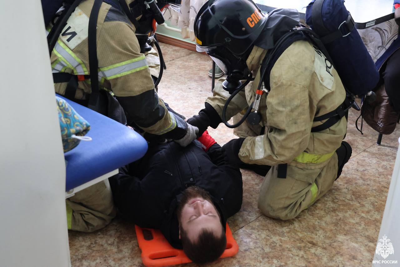 Пожарнотактическое учение на здание Республиканской клинической больницы имени С.В. Каткова