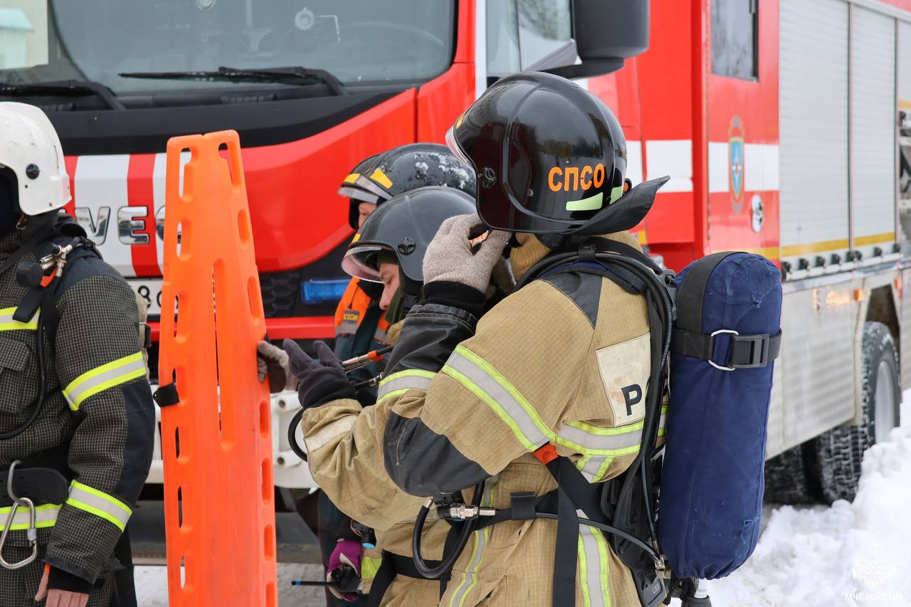 Прибывшие на место вызова огнеборцы бросили силы на спасение условных пострадавших, тушение очага пожара и защиту смежных помещений.