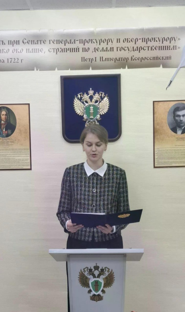 С напутственным словом к молодому специалисту, принесшему клятву верности Закону, обратился также ветеран прокуратуры Павел Сенькин, который напомнил, что присяга имеет юридическую силу и её нарушение влечет за собой дисциплинарную или даже уголовную ответственность.