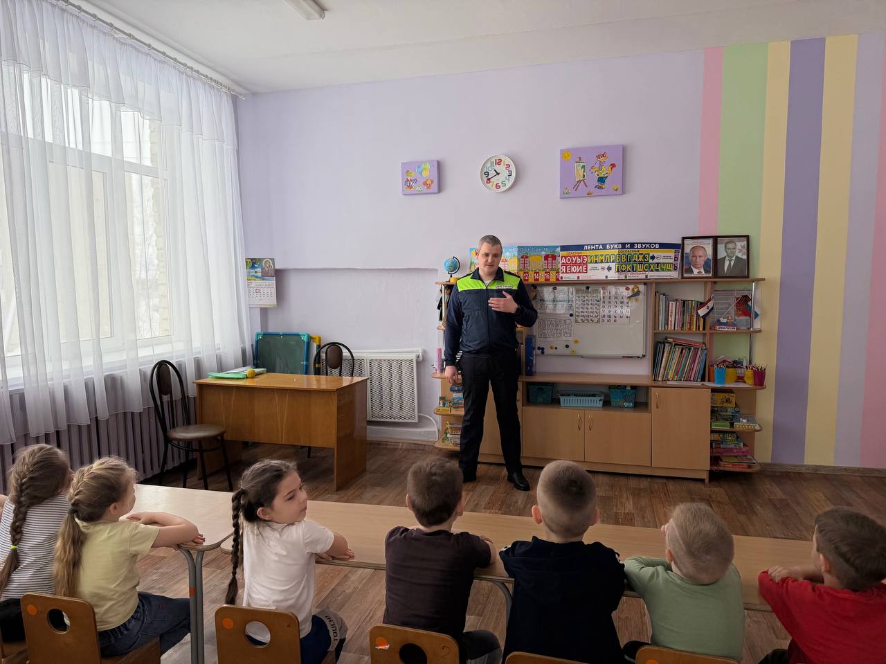 Начальник отделения Госавтоинспекции ММО МВД России «Лямбирский» капитан полиции Денис Пашуткин подробно разъяснил детям основы безопасного поведения на дорогах, подчеркнув важность соблюдения правил перехода проезжей части и правильного реагирования на сигналы светофоров.
