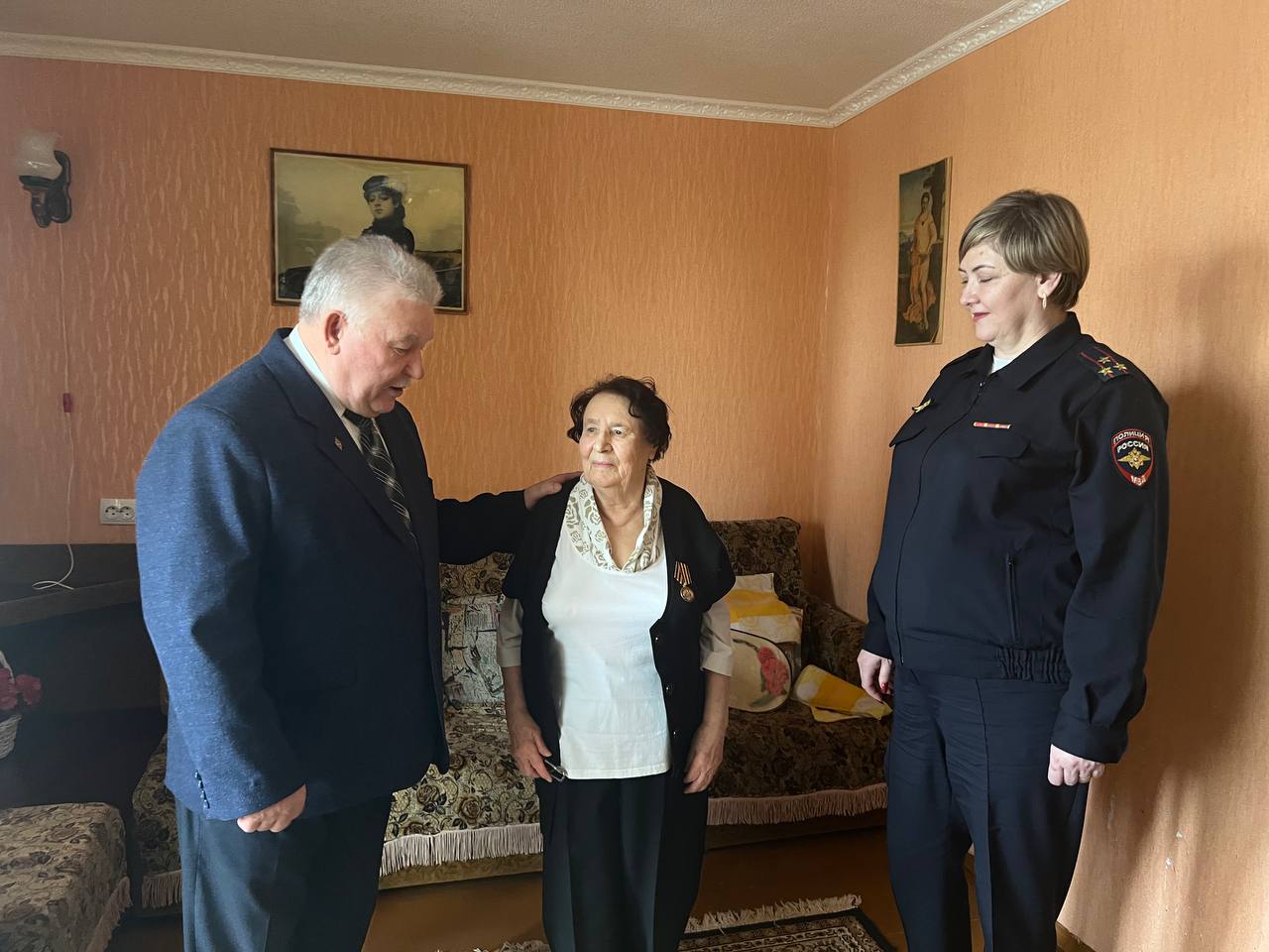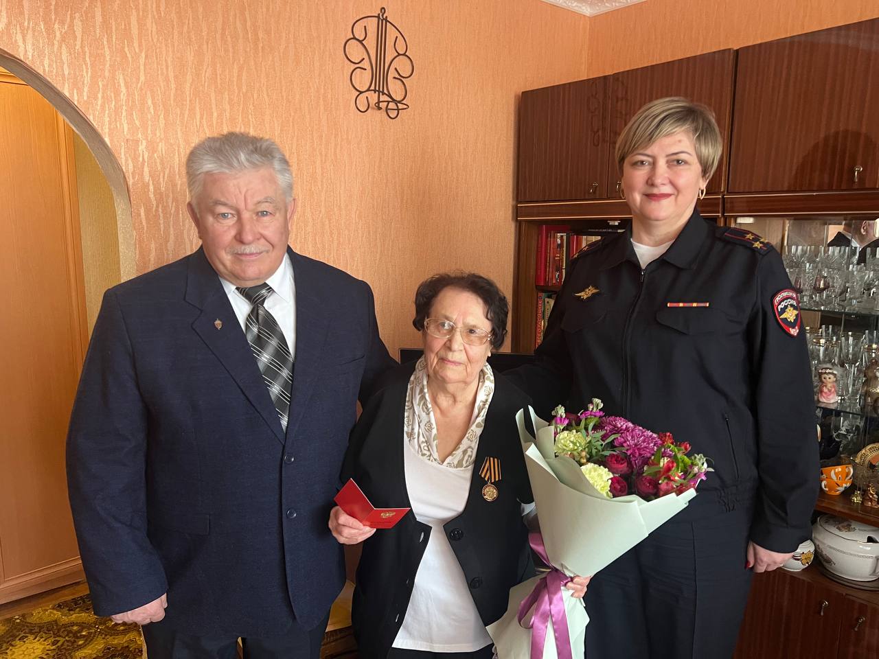 В МВД по Республике Мордовия поздравили 89-летнюю ветерана службы с весенним праздником и вручили заслуженную награду
