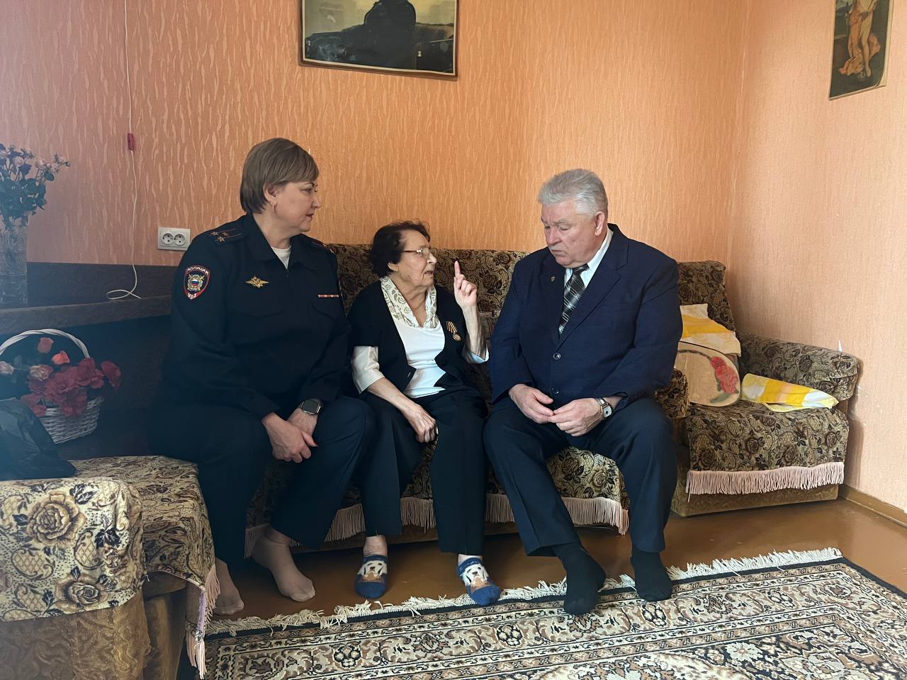 Руководитель кадрового Управления Альбина Ютяева и представитель ветеранской организации регионального МВД Виктор Ларин посетили ветерана ведомства Валентину Балашову.