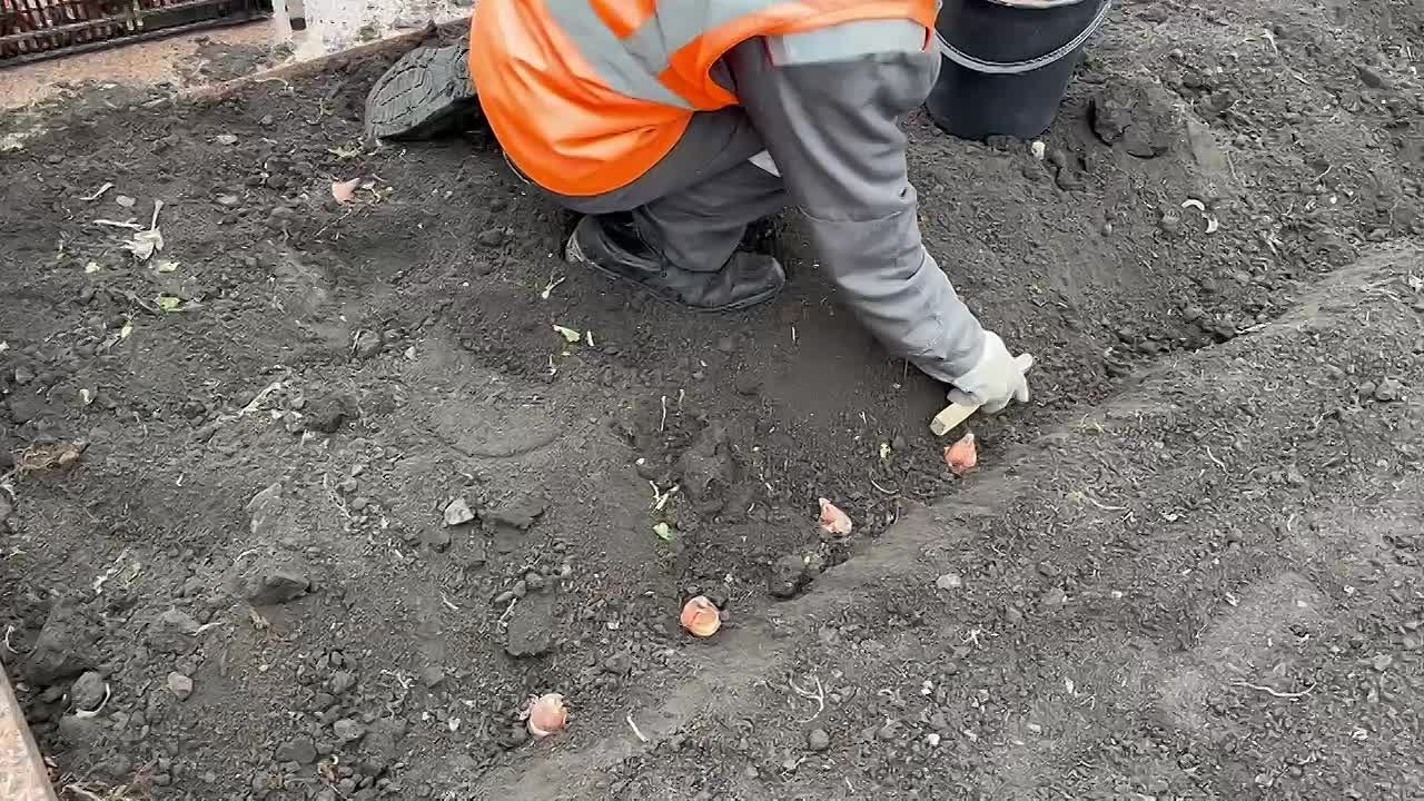 Рабочие по озеленению строго соблюдают технологию. Тюльпаны высаживаются, когда температура земли достигает 7-10 градусов.
