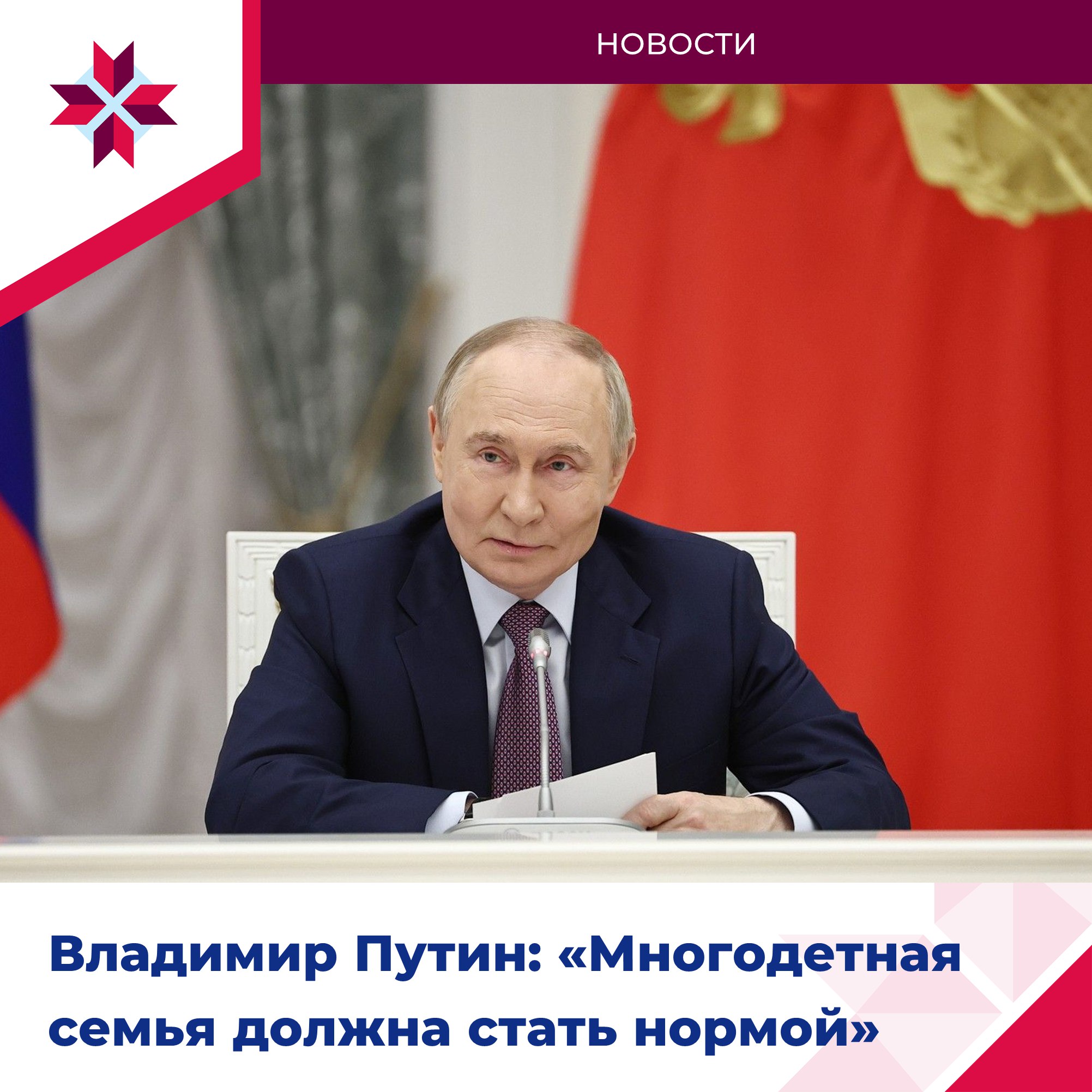 Президент РФ в очередной раз подчеркнул, что многодетная семья должна стать нормой: «Здесь огромное, порой решающее значение имеют внутренние ориентиры убеждения людей, то, как они сами расставляют свои приоритеты».