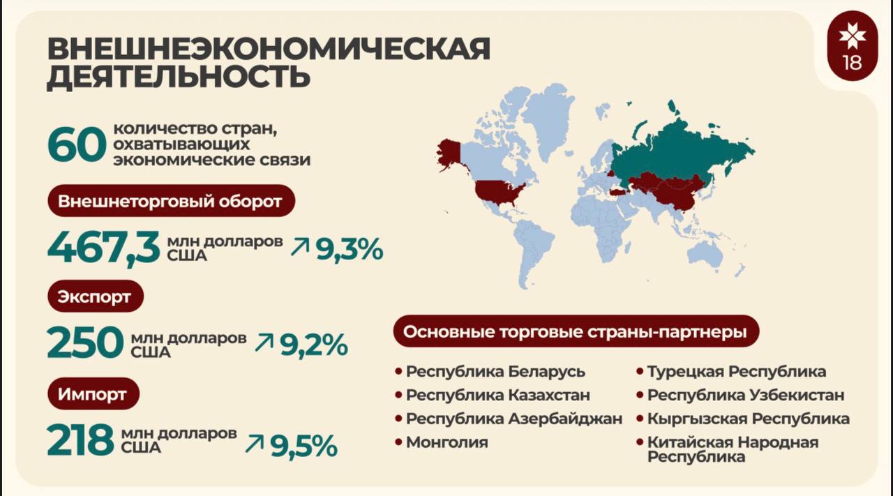 По итогам 9 месяцев прошлого года внешнеторговый оборот составил почти 500 млн долларов США.