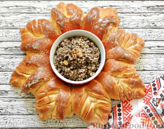 1. Дрожжевой пирог "Рождественский венок". Это изысканное лакомство, выполненное из дрожжевого теста на кефире, станет главной изюминкой вашего стола. Пирог не только восхитительно выглядит, но и наполняет дом ароматом домашней выпечки. Чтобы он стал еще более соблазнительным, его щедро смазывают сладким чайным сиропом.