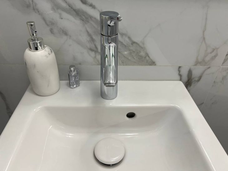 - Включите холодную воду, чтобы она стекала в раковину.