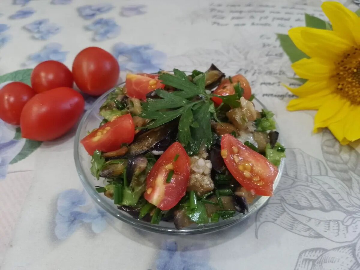 Летний салат с баклажанами и свежей зеленью: вкус в каждой ложке