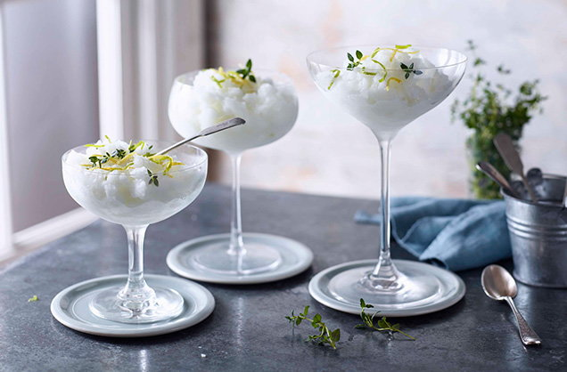 Перед подачей снова разбиваем смесь вилкой, раскладываем по бокалам и украшаем цедрой лимона или лайма, веточкой тимьяна или мятой. Добавка ароматов подчеркивает свежесть и делает момент подачи особенным.