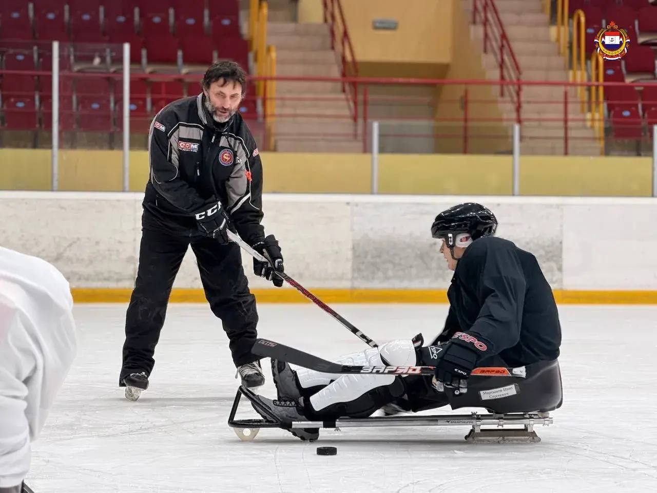 В Ледовом дворце прошла совместная тренировка по следж-хоккею ветеранов СВО с тяжёлыми ранениями и команды «Сияжар». Это часть проекта Госфонда «Защитники Отечества» и АНО «Больше, чем спорт».