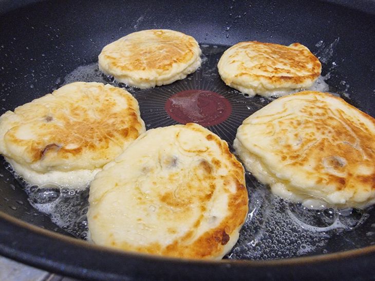 Масло на сковороде должно быть горячим (около 160C), но не дымить. Выкладывайте тесто ложкой, смоченной в воде, чтобы не липло.