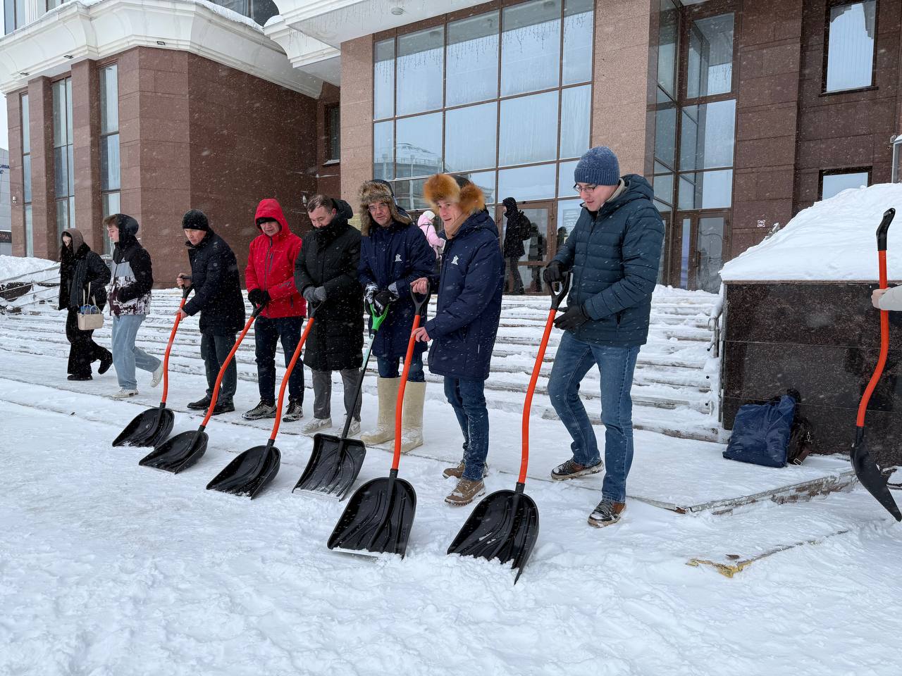 Сегодня на борьбу со снегом вместе со мной вышли настоящие бойцы настоящего МГУ: