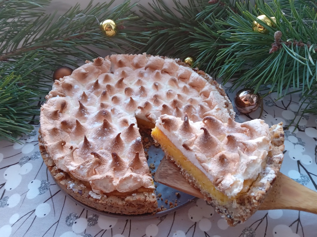 Лимонный тарт с меренгой готов к подаче!