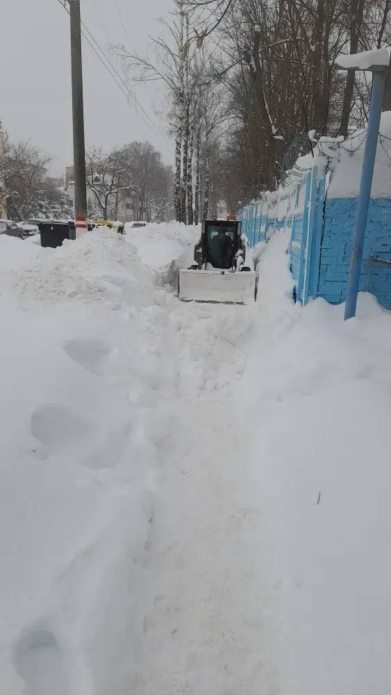Снега выпало очень много, и он не прекращается, как не прекращается ни на минуту и расчистка территорий коммунальными службами. Процесс осложняют и припаркованные автомобили.