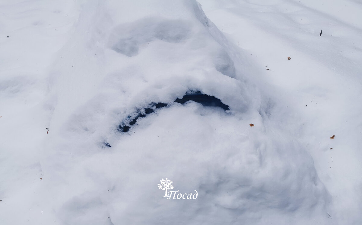 Под крышей из снега обнаружился сплошной лед, а под ним – слежавшийся слой, образовавшийся из-за оттепелей с дождями. Толщина снежного покрова достигала 20 сантиметров! Эта тяжелая масса давит на укрытие и в перспективе увеличивает риск повреждения плёнки.