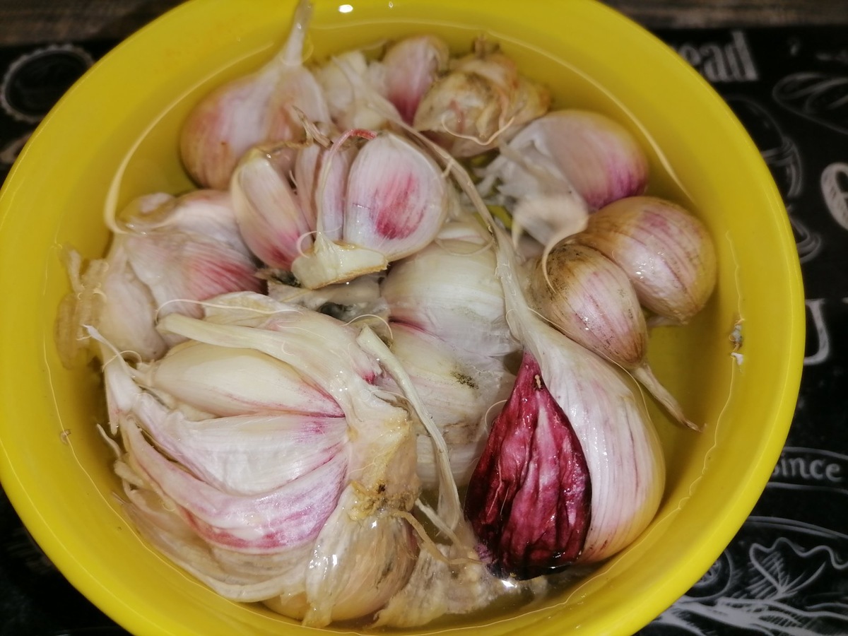 Вот как можно легко избавиться от шелухи. Для этого нужно залить чеснок теплой водой — не горячей и не холодной, а именно теплой. Достаточно оставить его в воде на 10 минут.