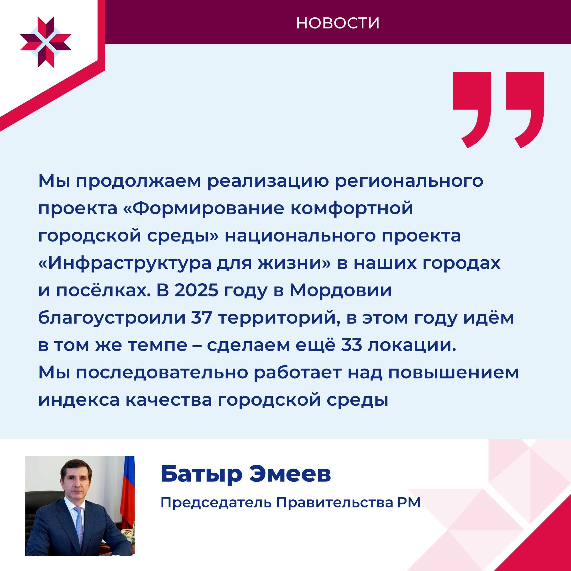 По поручению Главы Мордовии Артёма Здунова, в этом году включили в проект территории возле водоёма у стадиона «Старт», также планируют развивать площадки около «Мордовия Арены».