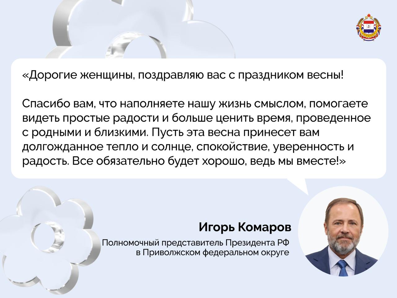 Уважаемые жительницы Мордовии!Поздравляю вас с Международным женским днем! Он неизменно связан с качествами, которыми вас щедро наделила природа – с красотой, нежностью, милосердием, с вашим величайшим даром давать начало новой жизни. Поэтому...