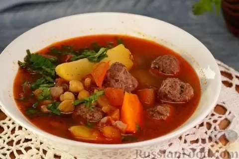 - Суп с чечевицей и фрикадельками: Красная чечевица придаёт этому созданию нежный вкус, а фрикадельки добавляют особую сытность. Свежие помидоры и перец делают его ещё более аппетитным.