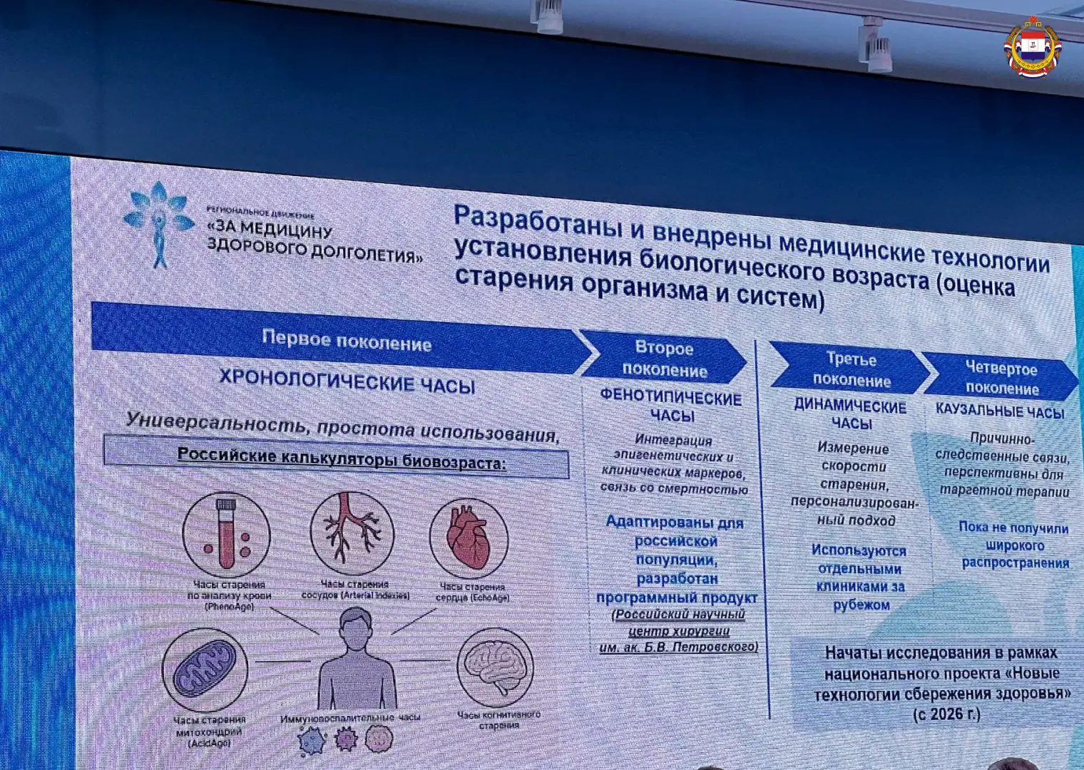 Секция прошла в формате живого диалога между учёными и практиками. Обсуждались последние исследования в области биомедицинских и генетических технологий, а также роль искусственного интеллекта в анализе данных о старении.