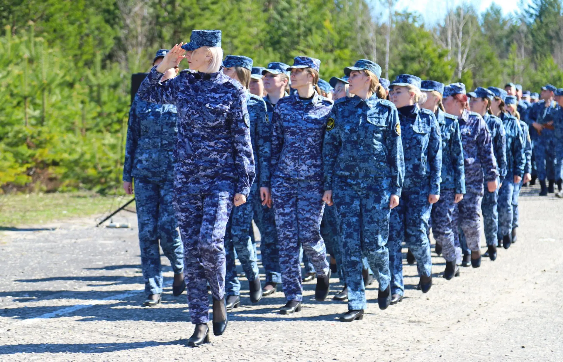 Сотрудницы МЧС ежедневно проводят интенсивные тренировки, оттачивая маршевый шаг. Их стойкость, дисциплина и профессионализм - наравне с коллегами-мужчинами.
