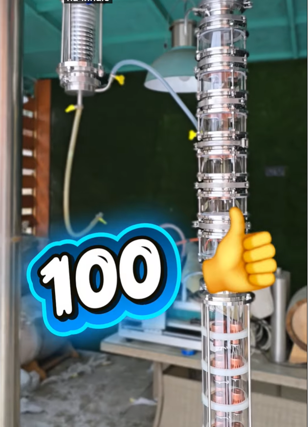 Следующий этап — поступление спирта-сырца на определённую высоту тарельчатой колонны, которая также функционирует на паре снизу, что инициализирует процесс детального разделения.